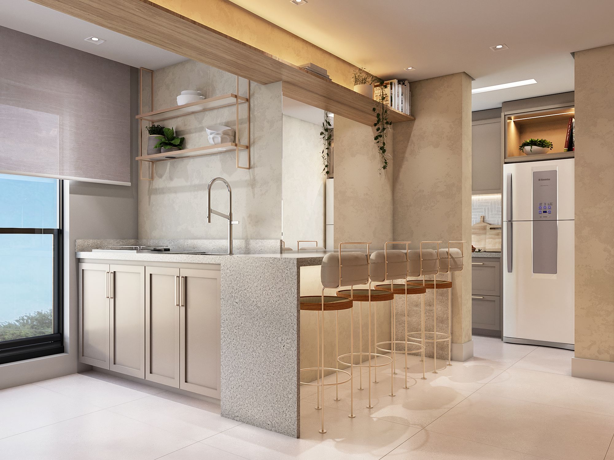 Áreas das unidades: apartamentos com 2 dorm de 47m² tipo / 73,96m² Garden e 88,65m² Garden.